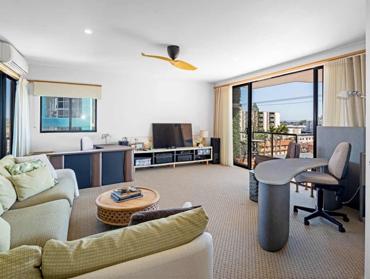 The Kraken is crackn' for the ultimate beach pad! In one of the few beachfront resorts on Straddie, you can hear the roar of the ocean, and taste the salt, as you watch the waves crash on the beach through tree-filtered views from the swanky "nautical steampunk" lounge. Fully self-contained unit. Bus stop at your door (no need for a car). Heated pool, sauna, boardwalk to beach. Easy walk to pub, cafe, shops, bowls' club, skatepark, library, tennis court, markets, and many glorious beaches.