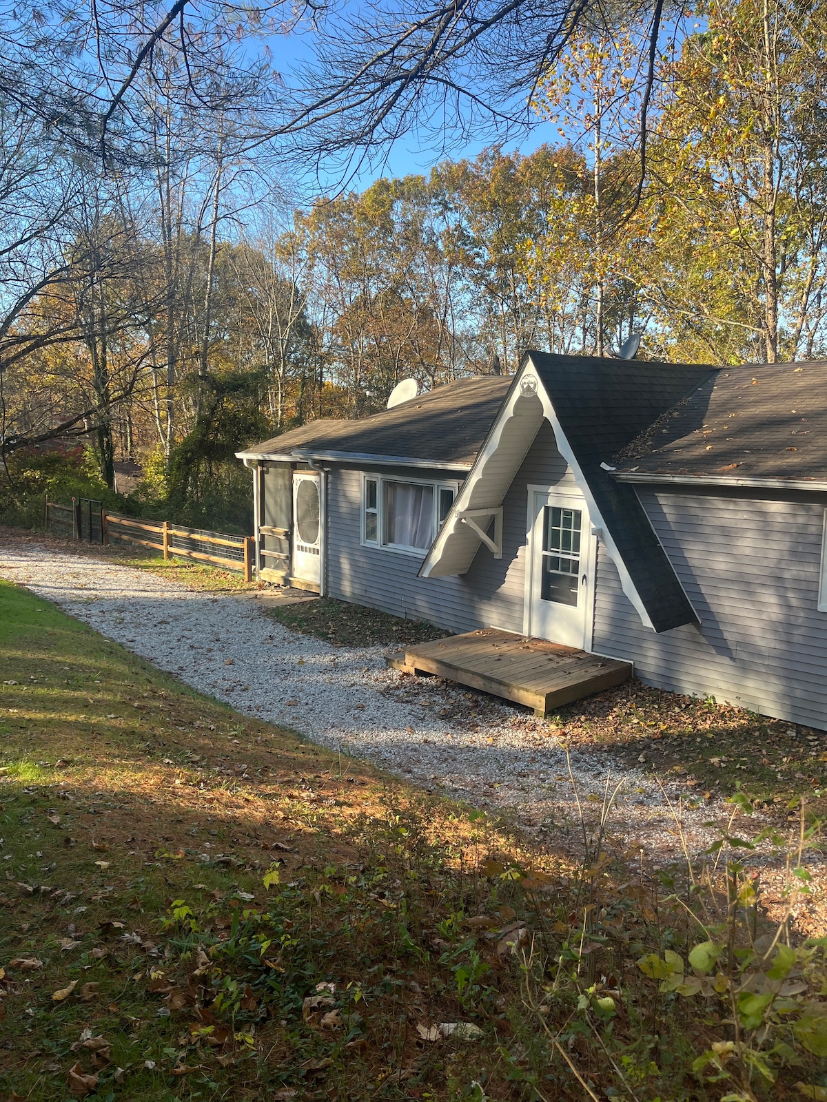 Our cabin is truly a quiet place in the country to 'catch your breath' and relax in the beauty of God's creation. There are trails over 32 acres of rolling hills and woods where you may sneak up on deer and other wildlife. Comfortable for four. Fire ring/grill and firewood. Porch with table and 2 chairs to have your coffee. Deck with gas grill, 4 chairs, table. 2 bedroom with queen beds, 1 bath with shower, washer/dryer. Full kitchen. 55' smart TV, DVD player, WiFi Pet friendly. $50 /stay