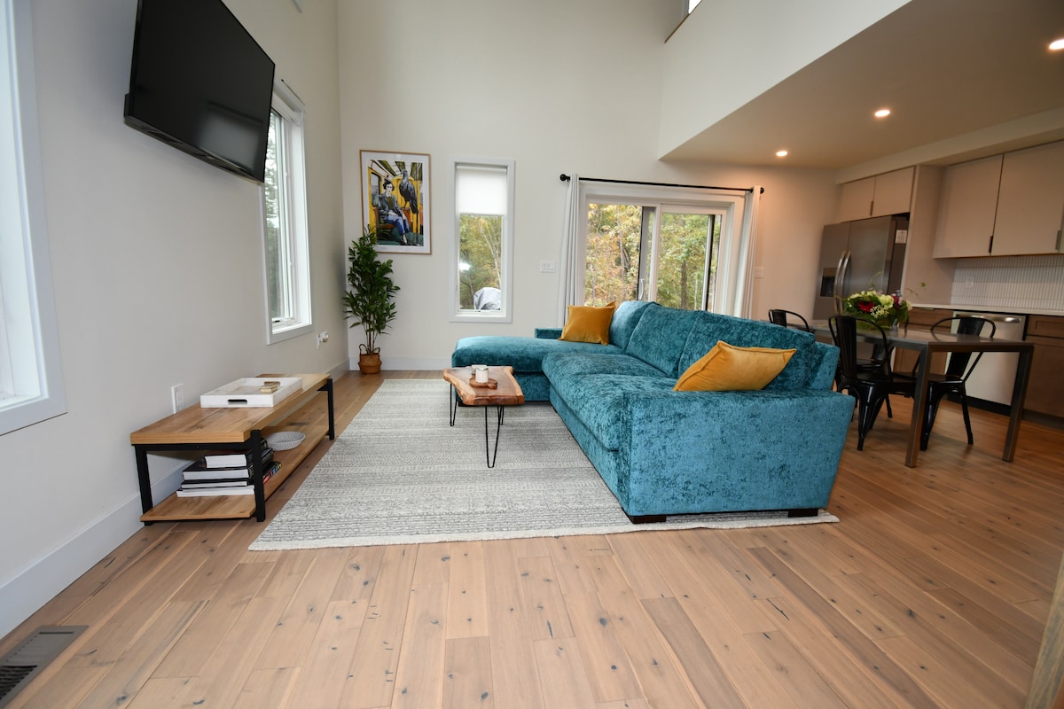 Experience the epitome of luxury in our breathtaking A-frame cabin, nestled amidst the serene woods. This modern retreat offers lavish amenities and a stunning open living space with floor-to-ceiling windows, immersing you in nature's beauty. Indulge in the private hot tub, relax by the fire pit, and unleash your culinary skills in our fully equipped kitchen. The large screened porch provides a tranquil oasis, while nearby hiking trails, golf courses, and a spa offer an unforgettable getaway!