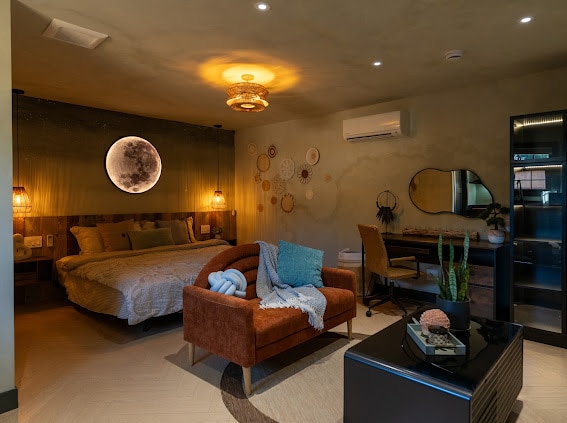 Escape to tranquility in our beautifully converted detached garage, now a charming boho rustic studio designed for your relaxation and enjoyment. Nestled in backyard, this unique space blends comfort, style, and convenience, perfect retreat just 10–15 min from SJ downtown and airport. It Includes kitchenette, wifi, TV, coffee table with built-in fridge. Has AC to keep you comfortable and a cozy intimate setting, this studio provides all the essentials, ensuring that it feels like a second home.