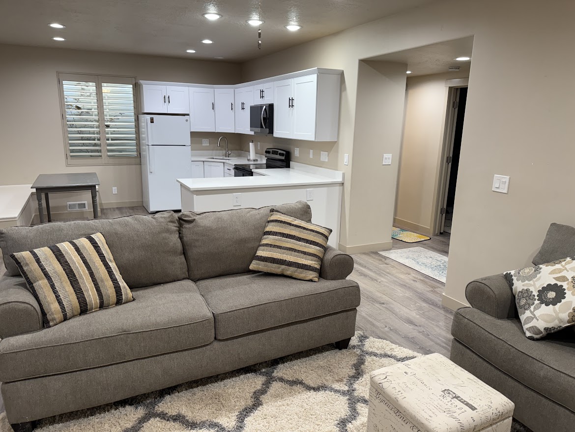 GORGEOUS NEW APARTMENT! Short and long term renters welcome! Enjoy style and comfort at this centrally-located and newly renovated apartment. 20 min to Snowbasin, 45 min to Park City, and 15 min to Ogden/Layton. Touches of luxury will include smart TVs, deluxe bedding and in suite W/D units. Close walk to restaurants, coffee shop, shopping, drug store and just a couple of blocks from hwy access, gas station, and park.