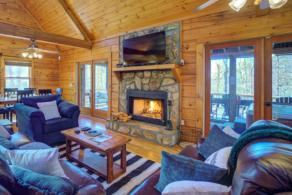 Your stay at Chasing Fireflies will be an unforgettable experience! This charming cabin is a perfect mix of modern and rustic. It’s hard to find a spot in this cabin without jaw-dropping views! 3 MILES TO DOWNTOWN BLUE RIDGE 2 KING SUITES WITH INCREDIBLE VIEWS 2 1/2 LUXURIOUS BATHROOMS INDOOR GAS FIREPLACE FULLY STOCKED KITCHEN 2 ENTERTAINMENT DECKS WITH STONE FIREPLACES, DINING AREA, WET BAR, SWING, PING PONG, AND OUT OF THIS WORLD VIEWS HOT TUB FAST INTERNET PARKING FOR 3 VEHICLES