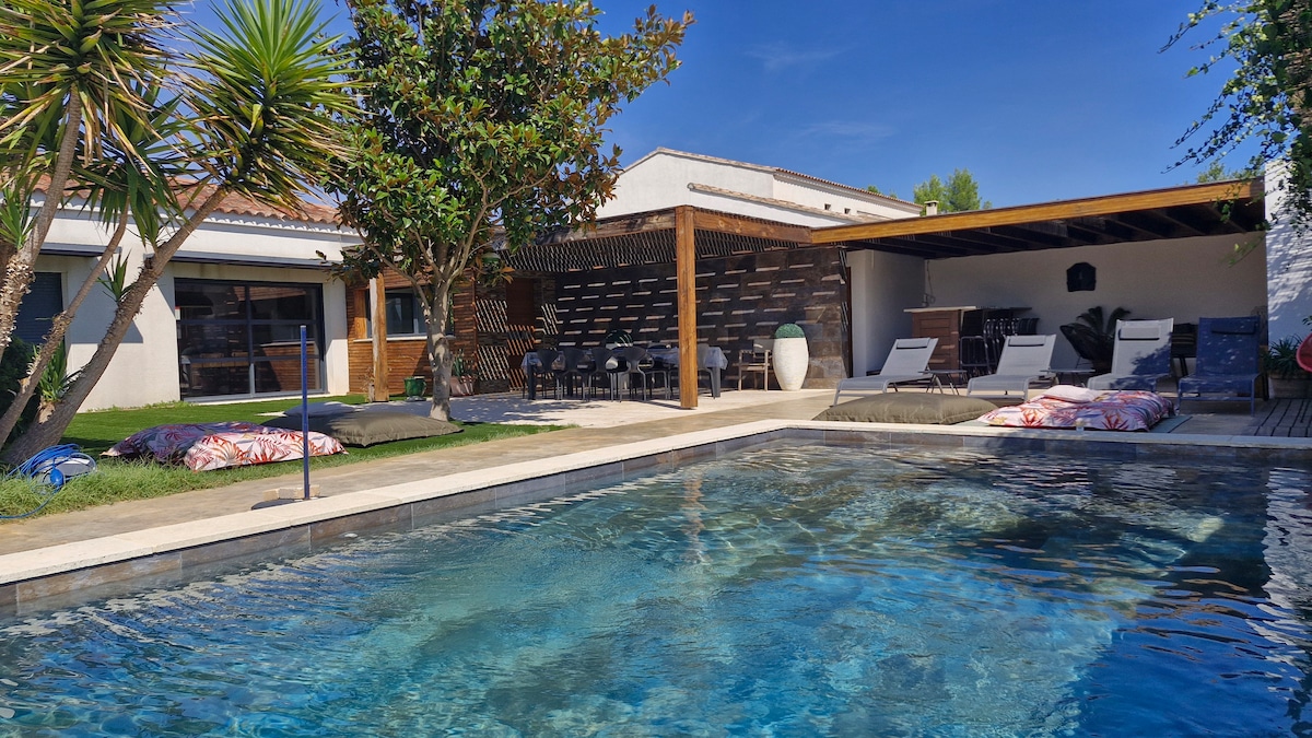 Venez séjourner dans cette magnifique maison de 140m2, climatisée avec piscine, pouvant accueillir jusqu’à 6 personnes. Idéalement situé, vous êtes au cœur du centre ville, proche de toutes commodités. A 5 minutes de la Gare à pied et à seulement 15 minutes d'Avignon en voiture.(35minutes en bus: arrêt de bus à 100m du logement.) Vous serez proche de nombreuses visites: - Avignon (9km) - Isle sur la sorgue (14 km) - Châteauneuf du pape (16km) - Saint Remy de Provence (23km) - Gordes (32km)