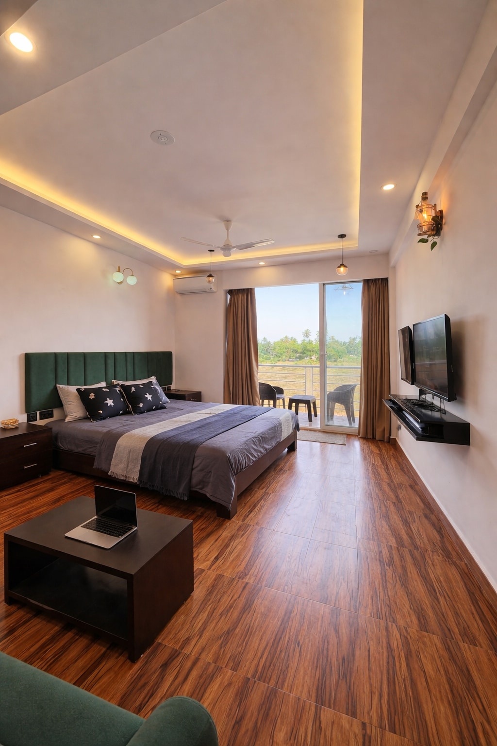 The BluJam Villa, Arpora is a beautiful lakefront 3BHK villa in North Goa with an infinity-edge private pool, offering stunning views of the lake(field during summer months), forest, & sunsets 5 mins to Baga, 10 to Anjuna & Calangute Stylish interiors, fully equipped kitchen, resident caretaker, 24/7 generator power backup, double parking space & serenity —all while staying close to Goa’s top beaches, cafes, nightlife, & attractions Perfect for families & friends - groups of 5, 6, 7, 8 &9