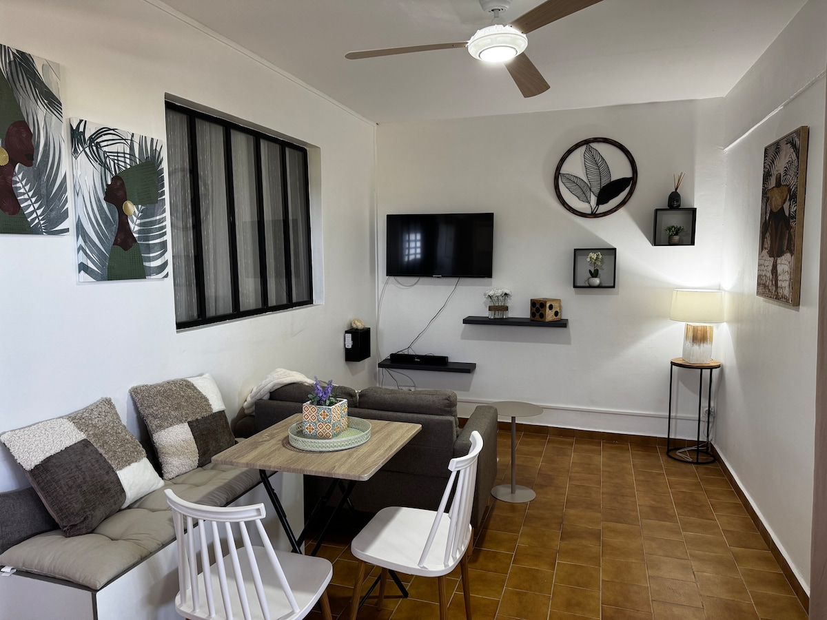 Bienvenue dans ce logement de type T2 spacieux et confortable, a 3 min d’une zone commerciale. Nous vous proposons une escale stratégique au cœur de l’île de la Grande-Terre. Le logement est situé à l’étage d’une villa dotée d’un accès indépendant et comprend, 1 Chambre climatisée + lit 2 places, 1 cuisine équipée, 1 salle d’eau +1 salon/salle à manger, Télé+ internet gratuit. Un point idéal pour parcourir la grand terre, avec tout ce qu’il vous faut a proximité.