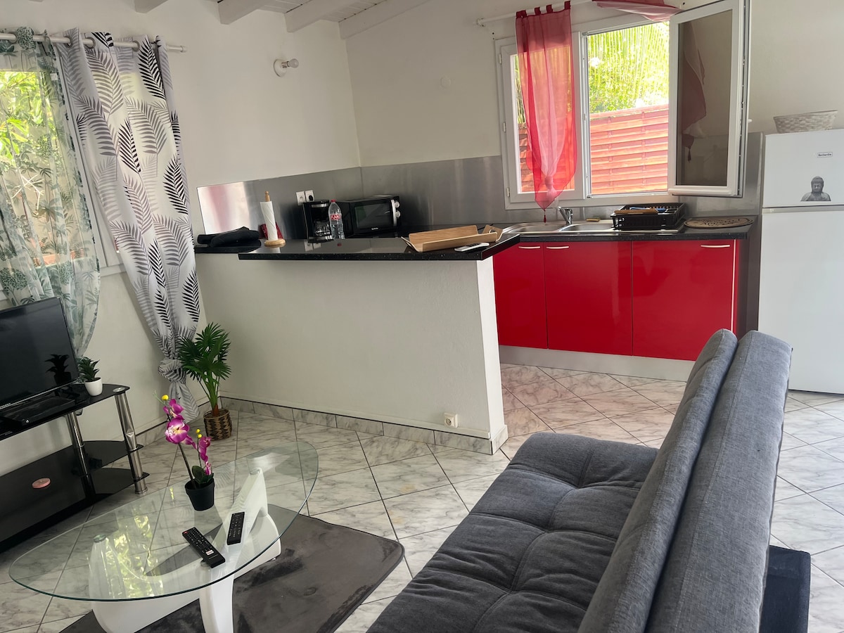 🌹La Rosa bungalow Bienvenue dans notre magnifique bungalow, l'endroit idéal pour simplifier votre vie et vous offrir un moment de détente et tranquillité. Que vous soyez en déplacement pour le travail ou pour des vacances vous saurez apprécier sa localisation. A quelques pas des commerces et attractions les plus prisées de la région. Les plages et rivières restent néanmoins accessibles à quelques km en voiture. 2,9 Km zone de Dothemare 6Km de l’aéroport, 2km l’hôpital et 5 km des plages.