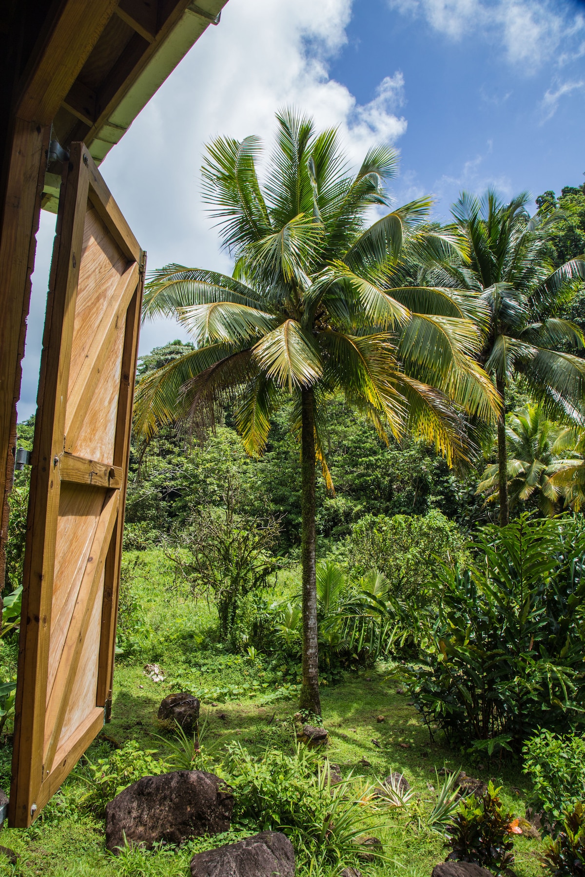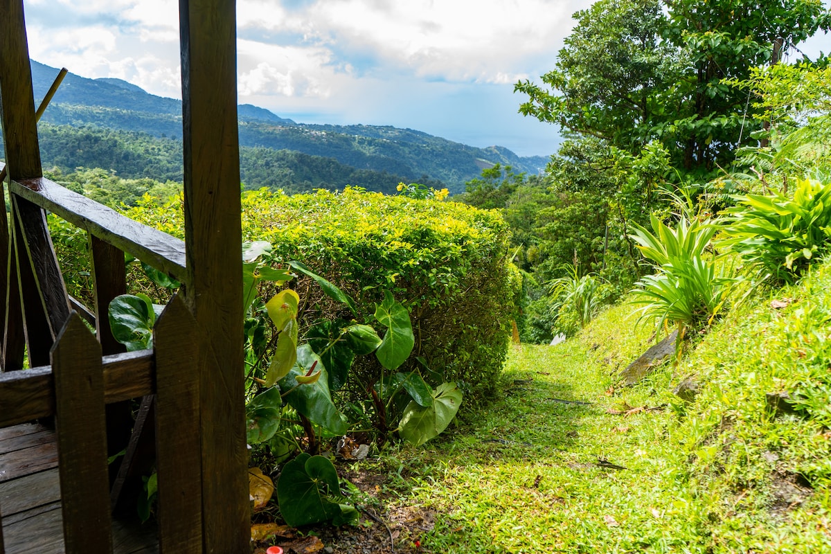 ZWisdom 1 of 2 - Cottage Cinnamon. Breathe-taking view of Morne Trois Pitons. Also visit Zephyra's Wisdom 2-Cottage Sugarcane. Both cottages recently upgraded and accommodates 4 guests. Rainforest Glamping on a cinnamon/cocao/coffee farm with pivate trail to 3Rivers swimming, hikiing, crayfish hunting. Fully-equipped kitchen, outdoor shower, internet. Nearby Rosalie Bay Hotel/Spa, Zeb&Zepis, Riverside Cafe, Emerald Pool, Turtle Beach, White&Soultan Rivers/Waterfalls and more.