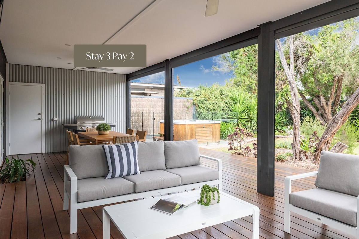 Newly renovated, this beachside escape is perfectly positioned in a private street close to the Esplanade. A short stroll away is Fisherman's Beach (200m) and Mornington Main Street's (5 min) boutique shops, cafes, restaurants & lively bars. Light and bright, this coastal property is perfect for romantic getaways, small family holidays and hens/girls weekends. Wine, dine and play with everything the Peninsula has to offer at your doorstep like walking trails, wineries, golf courses, and beaches.