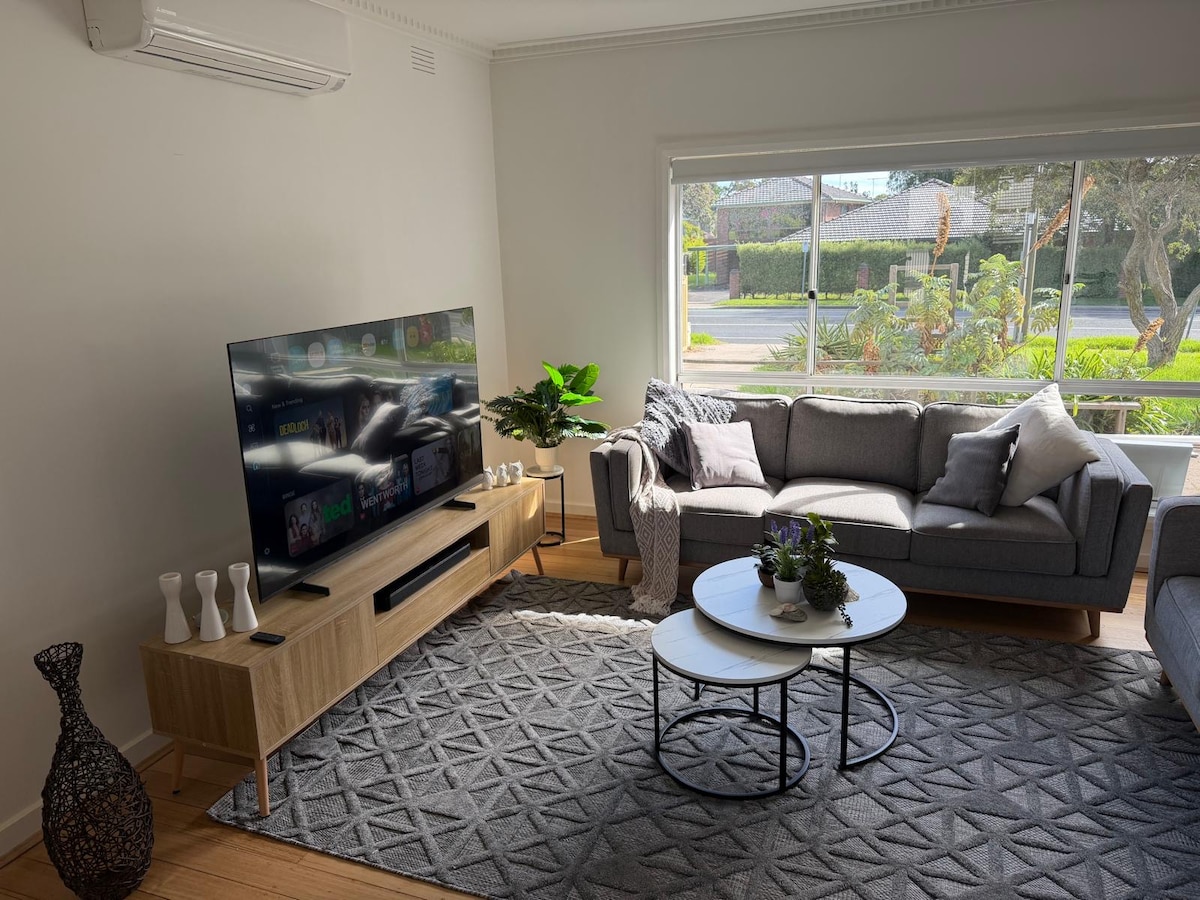 * Save Big: 20% Off for the Victorian School Holidays * This beautifully decorated, well-appointed beach house in Rye, Victoria is the perfect getaway for those seeking style and convenience. Enjoy the stunning surroundings of Moonah trees from the spacious private deck, perfect for a BBQ or soaking up the sun. Located in the heart of the Mornington Peninsula, this beach house is just minutes from Peninsula Springs, wineries, golf courses, cafes, and both bay side and back beach side beaches.