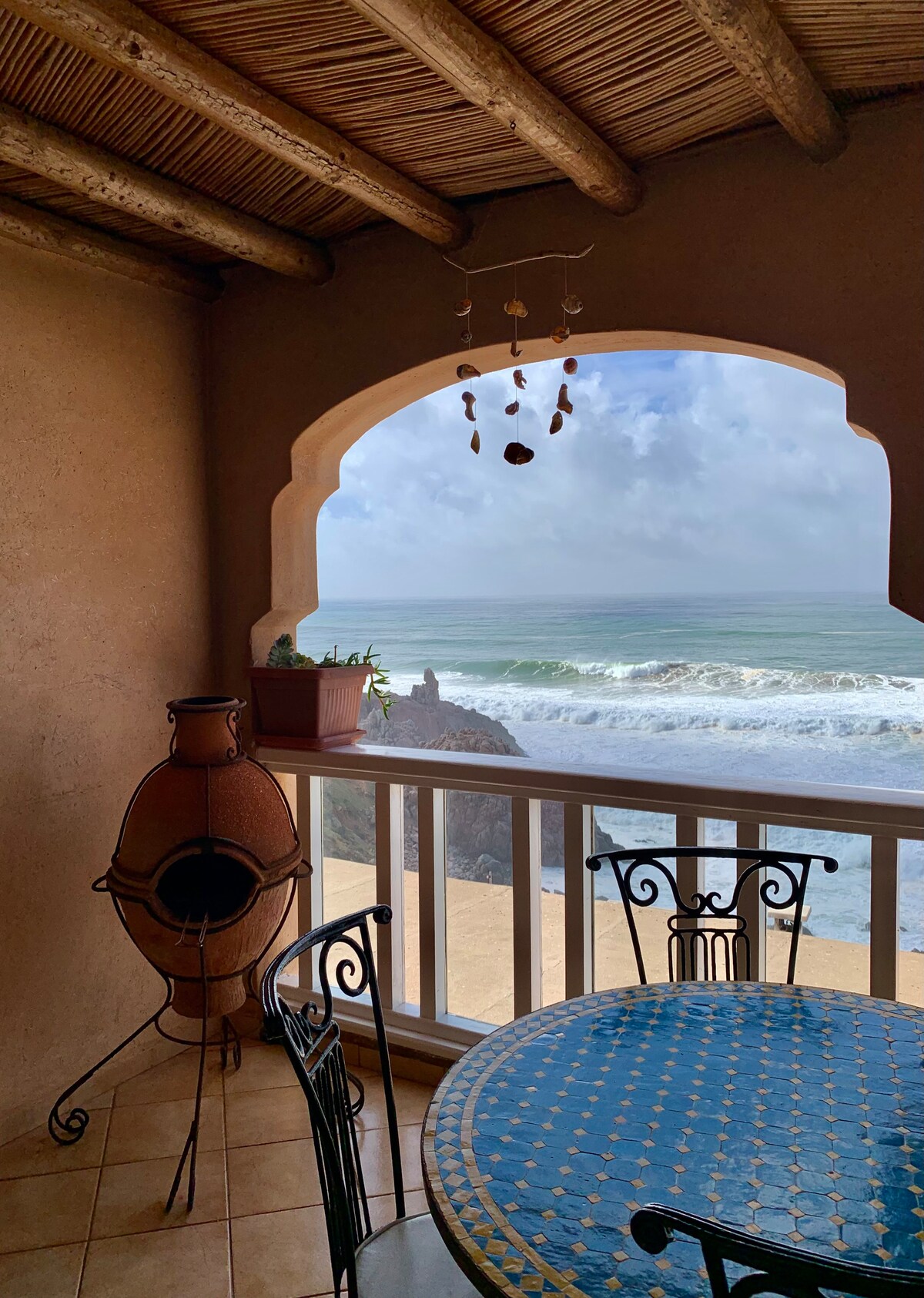 Wooden Heaven is a uniquely themed apartment in central Essaouira, featuring an open layout and a spacious terrace with magnificent panoramic views over the entire city. With its emphasis on wood, the interior exudes warmth and charm, offering a serene retreat. Guests can enjoy nearly 360-degree views, perfect for witnessing breathtaking sunrises and sunsets. This apartment promises a truly exceptional stay, blending modern comfort with unparalleled vistas of Essaouira's vibrant urban landscape.