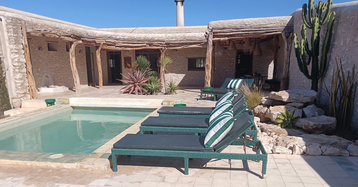VILLA CLASSÉE PREMIÈRE avec 202 commentaires 5 étoiles sur 3 sites à 6 kilomètres seulement de Essaouira Villa 160 m2 entièrement privatisée de plein pied sans vis à vis mais non isolée DÉCORATION CHIC Villa d’architecte Entre tradition marocaine et design épuré GRAND CONFORT Wifi 4 G 3 chambres Simmons 3 salles de bain Vaste séjour vue sur piscine et jardin cheminée TV HD écran géant Samsung cuisine équipée Whirlpool barbecue REPAS A DOMICILE EN OPTION AVEC BOUCHRA