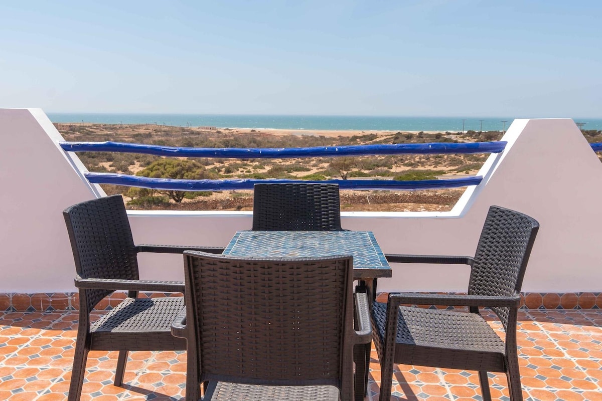 Appartement atypique avec une magnifique vue sur la plage d'Essaouira. Depuis votre terrasse, vous profiterez d'une des plus belles vues d'Essaouira, de sa plage, de l'île et de l'étendue du ciel bleu et de l'océan. Une vue dégagée à 360° sur toute la ville vous fera voyager à travers les remparts, les mouettes et la forêt d'Essaouira. Vous êtes à 50 mètres du sable fin et de la mer et à 800 mètres de la médina d'Essaouira, site classé au patrimoine mondial de l'UNESCO.
