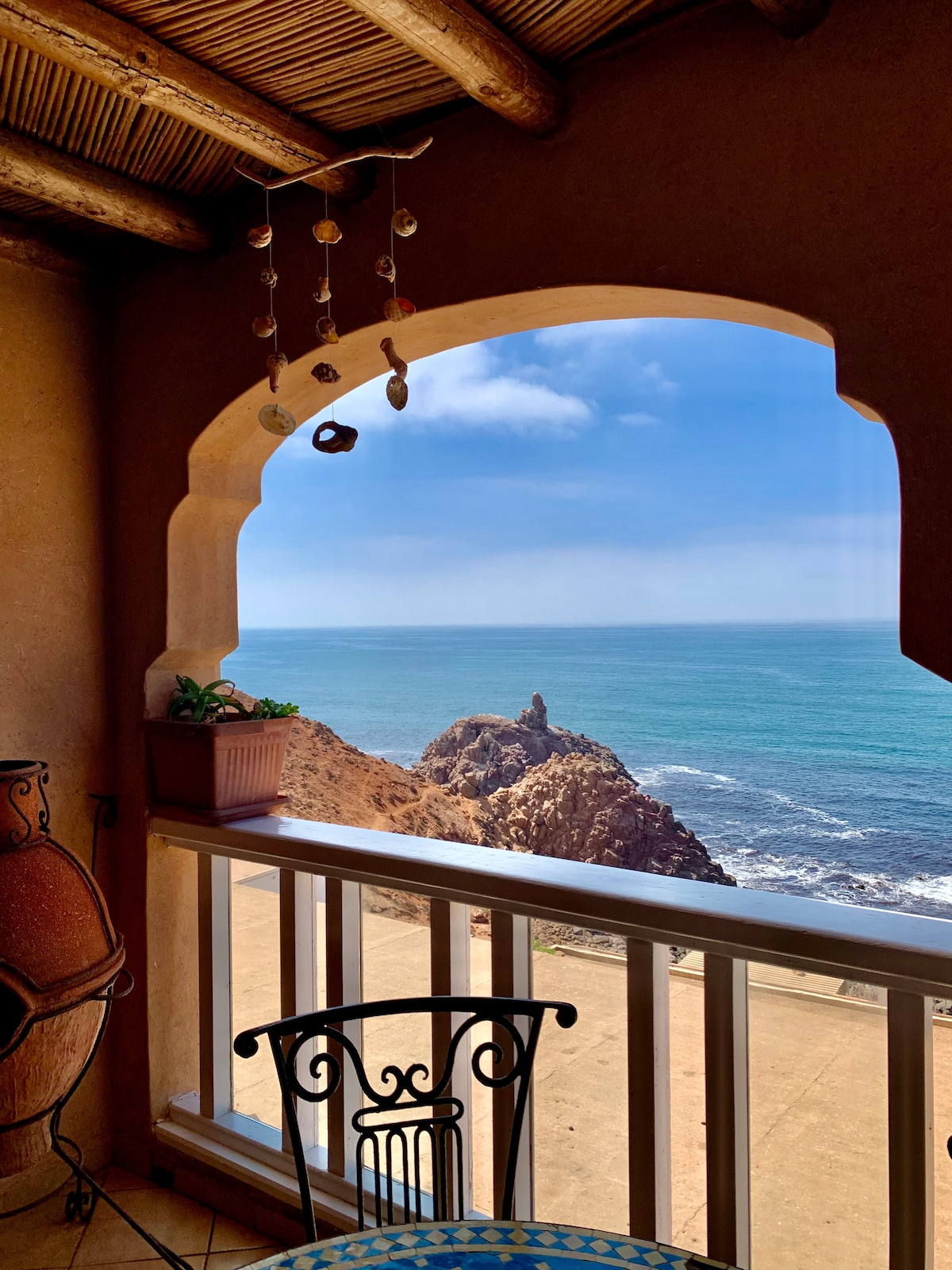 C'est le seul appartement dont le balcon de 17m2 est construit au dessus du chemin qui longe la plage, offrant une vue exceptionnelle sur les vagues, le village, les pêcheurs, les surfeurs. Très confortable, décoré et entretenu avec soin pour un séjour exceptionnel au dessus de l'océan, proche des nombreux cafés et restaurants longeant la plage et à 2 pas des écoles de surf, au coeur de ce village berbère convivial mêlant pêcheurs, commerçants, surfeurs du monde entier...et quelques touristes.