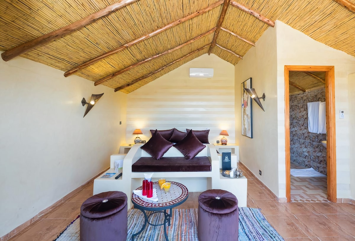 Nichée dans un domaine d’arganiers clos et sécurisé, cette élégante maison berbère offre un séjour unique à seulement quelques pas de l’océan. Profitez d’une chambre raffinée, d’une grande terrasse intimiste, d’un accès libre à la piscine et de la possibilité de commander vos repas sur place. Un havre de tranquillité, entre nature préservée et confort absolu.