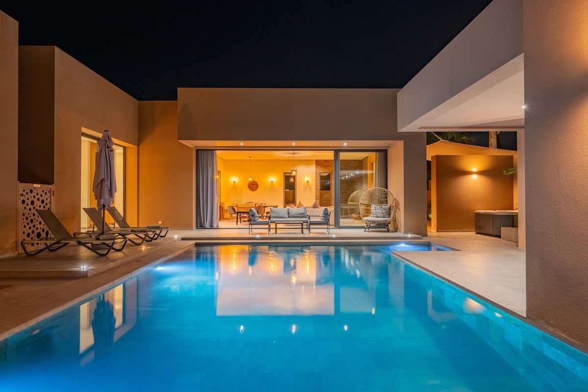 Privatisation complète jusqu’à 20 personnes. Grande villa de luxe, piscine chauffée & jacuzzi, 6 grandes suites familiales climatisées et toutes équipées. Organisation de fêtes, anniversaires... avec danseuses orientales, musiciens, cracheur de feu … et bien plus ! Services haut de gamme, ménage quotidien, serveurs, majordome. Equipements sportifs, coach privé sur demande. Notre staff en cuisine vous fera découvrir les merveilles de la gastronomie marocaine. Transfert aéroport gratuit (1 vol)