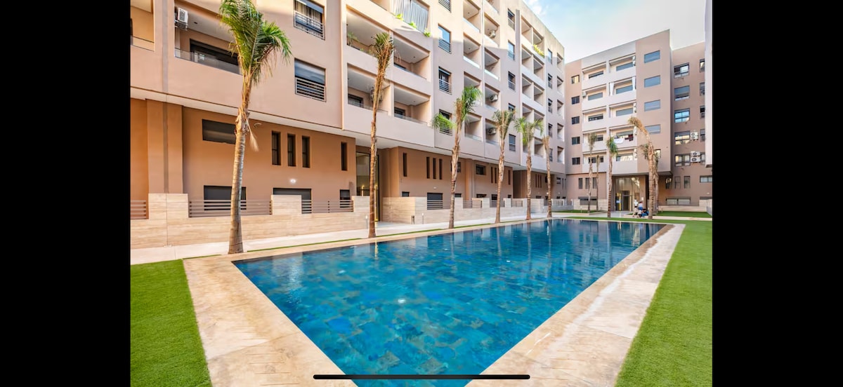 Ce logement est IDÉAL pour son emplacement au cœur de Gueliz et ses prestations de qualité. À seulement 800 m des Jardins Majorelle, 500 m du Carré d'Eden et 400 m du Marché des Fleurs, explorez Marrakech à pied. Profitez de la piscine sur le rooftop pour vous immerger dans le charme et la magie de la ville rouge, ainsi que d'une piscine au rez-de-chaussée. Appartement moderne, offrant confort, style et wifi à la fibre pour un séjour inoubliable. Ne ratez pas cet emplacement privilégié !!