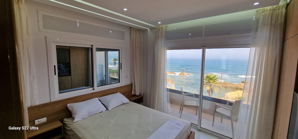 Détendez-vous dans ce logement unique face a l'océan atlantique une vue exceptionnelle sur la mer et sur le site historique ( krikia ) de assilah l'appartement est composé de 3 chambres spacieuses 2 salles bain une cuisine bien équipé ouverte sur le salon l'appartement est situé sur la nouvelle corniche d'assilah il ya des café & restaurant a proximité l'appartement est situé également a 10 minutes a pied de tout les commerces et du centre d'assilah