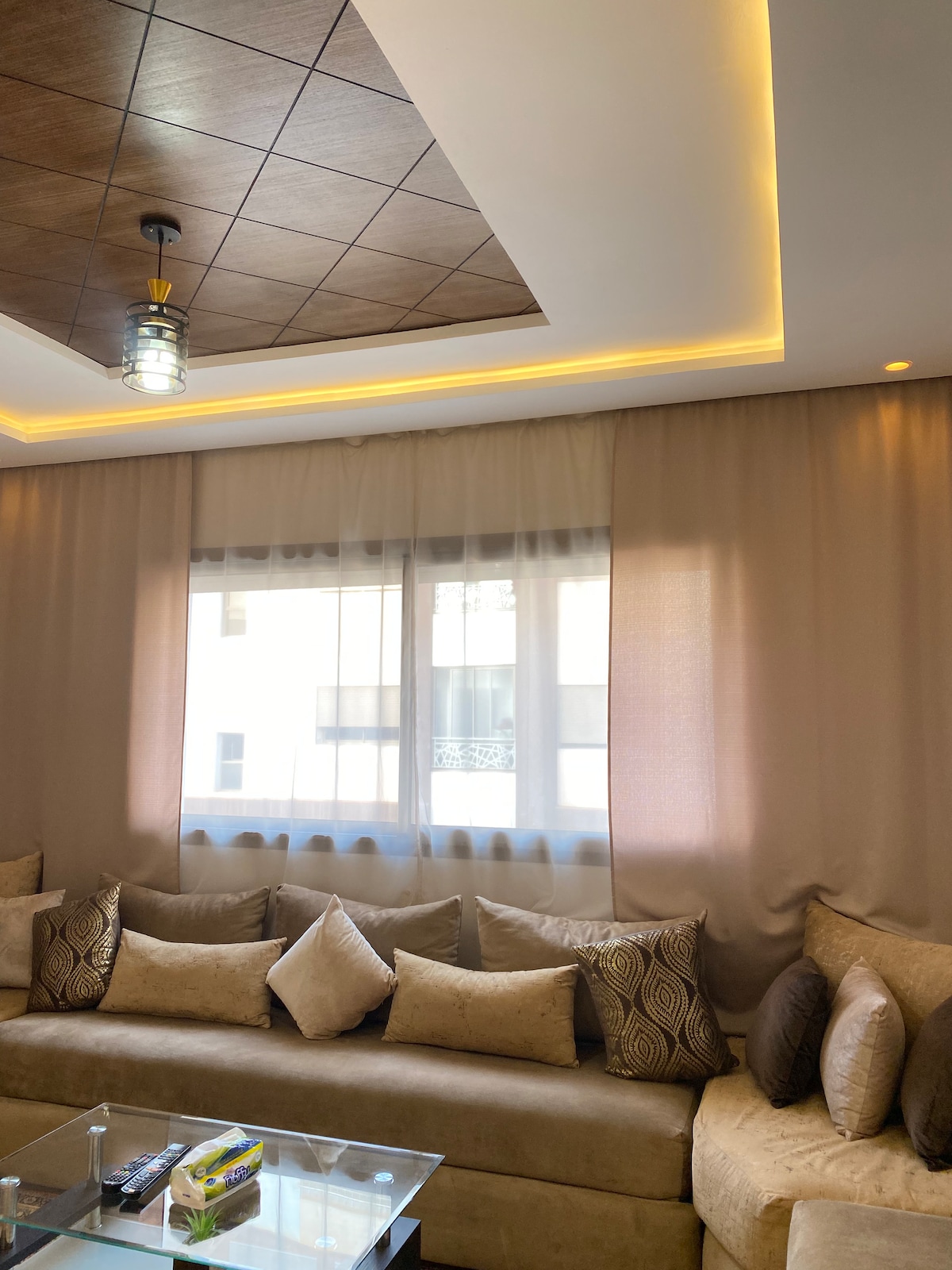 jolie résidence à salé avec parking gratuit au sous sol,aprt neuf avec ascenseur,sécurisée 24h/24 caméra de surveillance fournie:serviettes,beignoir, draps,oreillers,couverture. tt commerce،transport، spa ,restaurant,banque....au pied de la résidence .marina de salé à 7km ,rabat à 8km,aéroport rabat salé à 20minute. vous allez vous sentir comme chez vous et serez satisfait de la parfaite propreté du logement . les couples n'ont marié ne sont pas autorisés selon la loi marocaine.