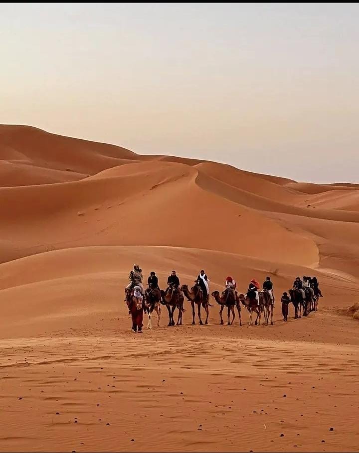 We starting camel tour •the tour start (4-5) pm we come back around 7-8am next day •Our camp fits 10 people in total We do also offer : • ATV Quads •Full Day and Night camel trek(Starting at 10am ) •2 Nights Camel Trek •We have free parking for you • the camel ride is about one hour to see the sunset then you go to the camp • Sandboarding •tea time • Dinner & Breakfast • Berber music with drums around the fire (campfire) • Private Tent at Desert Camp • Sunrise & sunset with camels