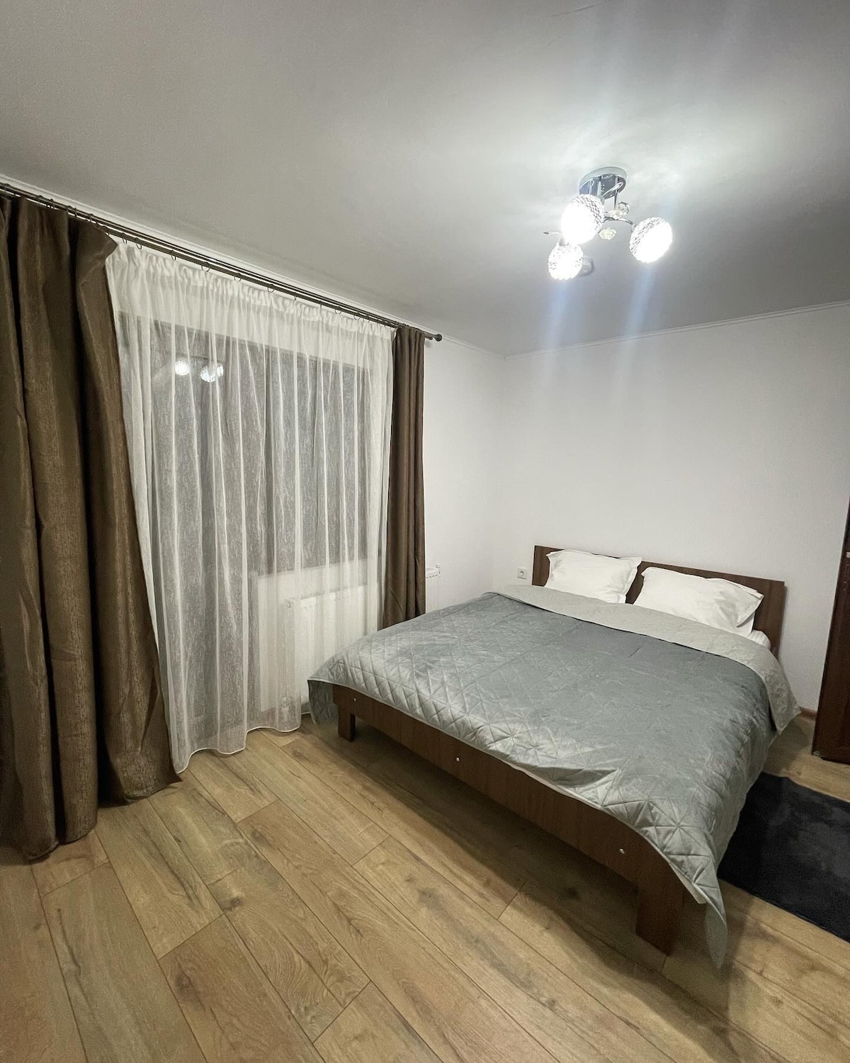 Welcome to our cozy chalet, overlooking the majestic Bucegi Mountains. Our chalet is perfect for any vacation or those who want to work from home. The open space kitchen and living room with a wood stove is perfect for cozying up with a book or working on your laptop. We offer free Wi-Fi so you can stay connected with your loved ones. The bathroom features a shower and the bedroom has a small balcony that offers stunning views of the Bucegi Mountains.