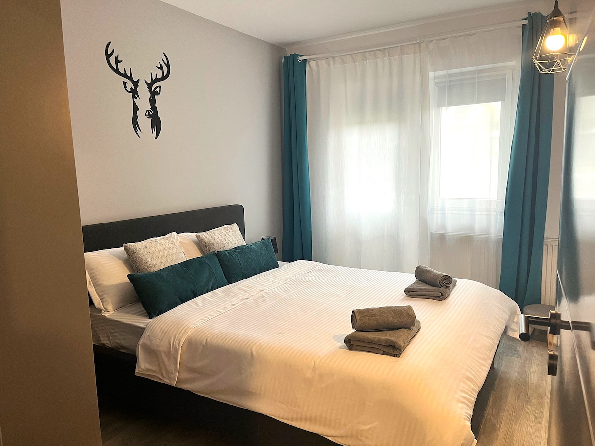 Welcome to our riverside sanctuary in Busteni - an enchanting two-bedroom apartment that aims to impress its guests with a gorgeous river and mountain views from the delightful outdoor terrace lounge. Step into a chic interior that seamlessly combines comfort and style, complete with a fully equipped kitchen. Reconnect with nature at this tranquil riverside escape, conveniently located within walking distance of the city center and other captivating attractions in the area.