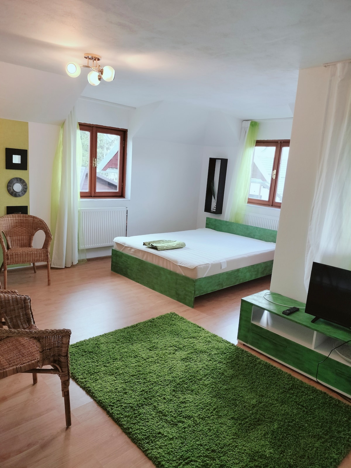 Tucked away at the edge of the forest and overlooking the majestic Bucegi Mountains, Casa del Monte is a cozy studio nestled in the garden of our wooden cabin in Poiana Tapului. It’s a peaceful space, ideal for slowing down and reconnecting with nature. Whether you’re looking for quiet mornings with mountain views, forest hikes, or a relaxed home base to explore the Prahova Valley, this is the place 🌲