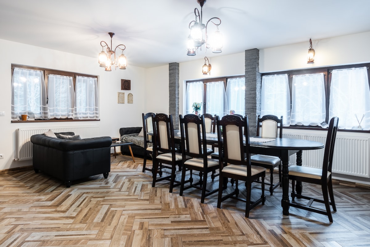 Welcome to this one-of-a-kind penthouse in Sinaia’s prestigious Furnica neighborhood, located on the second floor of a new, modern building. With five bedrooms and three bathrooms, it comfortably hosts up to 10 guests — perfect for families or groups of friends. You’ll enjoy: - 4 parking spaces (2 indoor, 2 outdoor) - A fully equipped kitchen with premium appliances - A stunning, running gas fireplace - A Nespresso coffee machine - Netflix, Disney+ as well as a PS4 and an Xbox One X