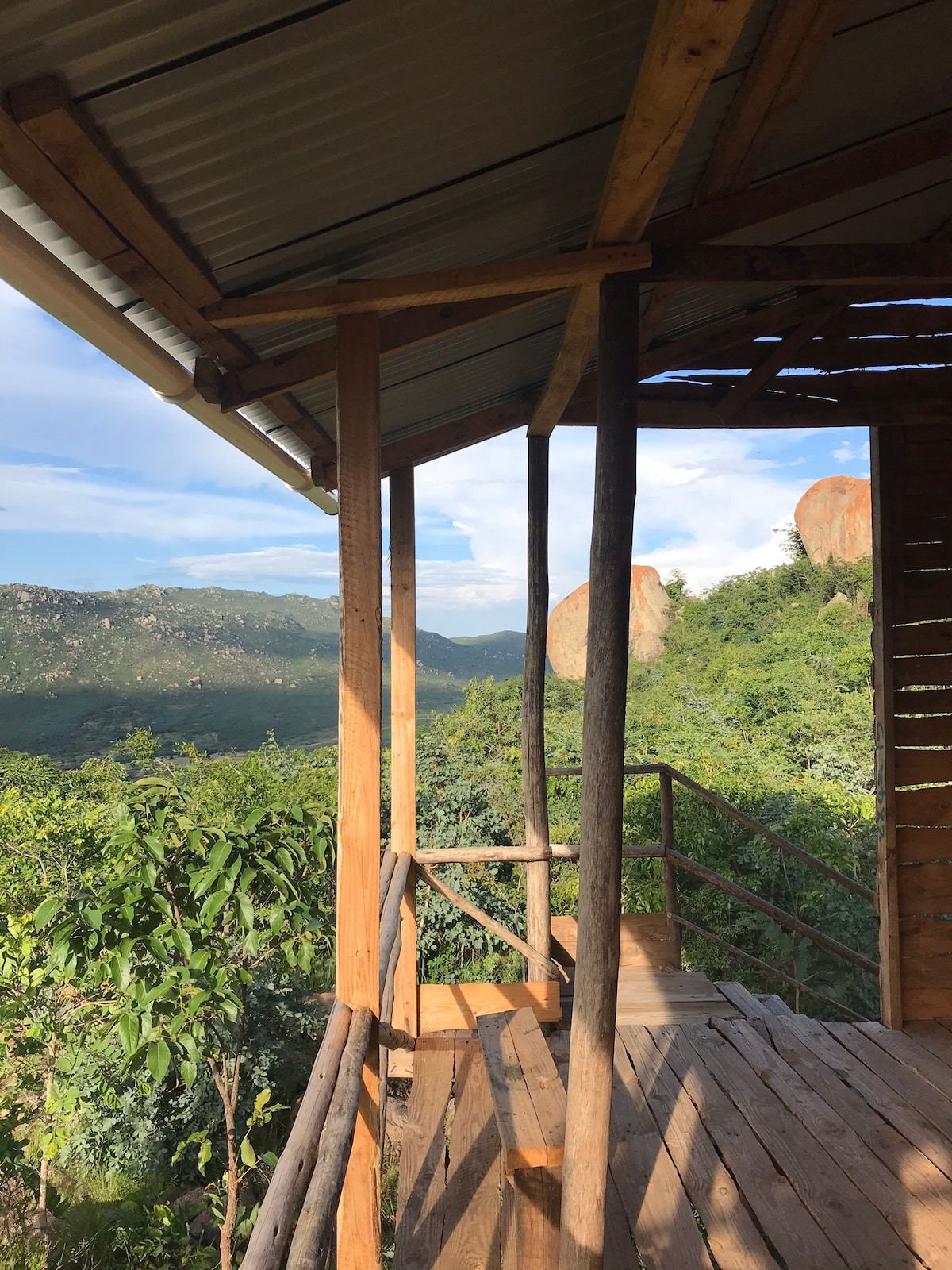 Get away from it all, you will only hear birds singing! Experience stunning views of mountains and natural miombo woodland. Large balcony where you can relax and take in the view, and cook on campfire below. Conditions are very basic, and you have to walk 20 minutes from the road to reach the cabin. Think of it as camping. You will probably not be able to find the cabin on your own! Eliya can guide you for 30,000/=.
