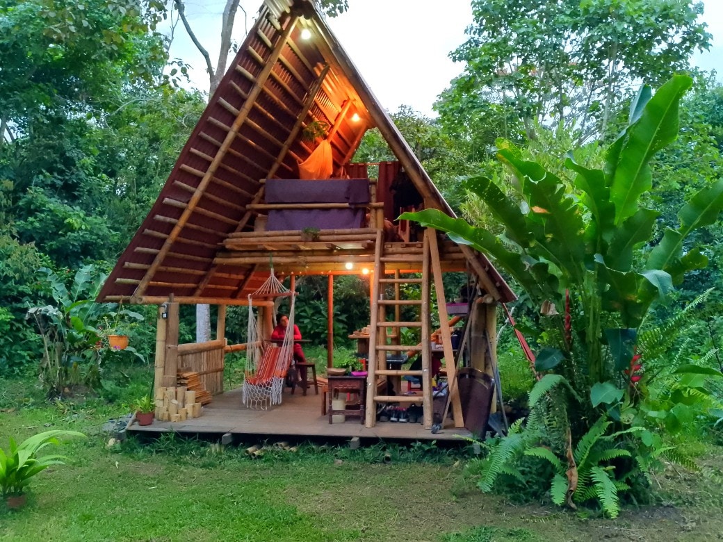 Akanni Glamping te ofrece una experiencia diferente de alojamiento en Puyo, ubicado junto a Fika Häus, ideal para parejas que deseen desconectarse del estrés de la ciudad y reconectar con la naturaleza. Nuestra cabaña cuenta con un dormitorio, sala con sofá cama, parqueadero y un jardín con árboles frutales de temporada. Además, podrás disfrutar de un balcón privado y una red de descanso perfecta para observar aves amazónicas y los curiosos monos chichicos que frecuentemente nos visitan.