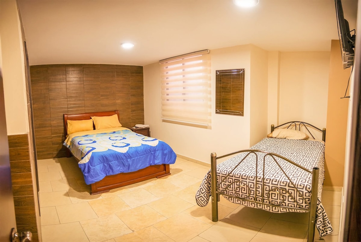 Disfruta de una habitación cómoda, amplia y totalmente accesible, pensada para brindar facilidad y confort a personas con movilidad reducida. Cuenta con dos camas matrimonial, clóset espacioso, buena iluminación y un entorno tranquilo, ideal para el descanso. Ubicada en un edificio moderno en el corazón de Esmeraldas, a pocos pasos del parque central, farmacias, bancos y el municipio. Un espacio diseñado con sensibilidad y cuidado para que te sientas bienvenido/a en todo momento.