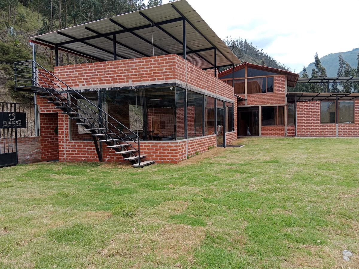 The house has all the comforts, it is comfortable and cozy, in addition to having large green areas where you can camp, take walks, meetings and events with friends, see the valley of the city of Paute, and relax in the pool, in addition of being surrounded by nature…
