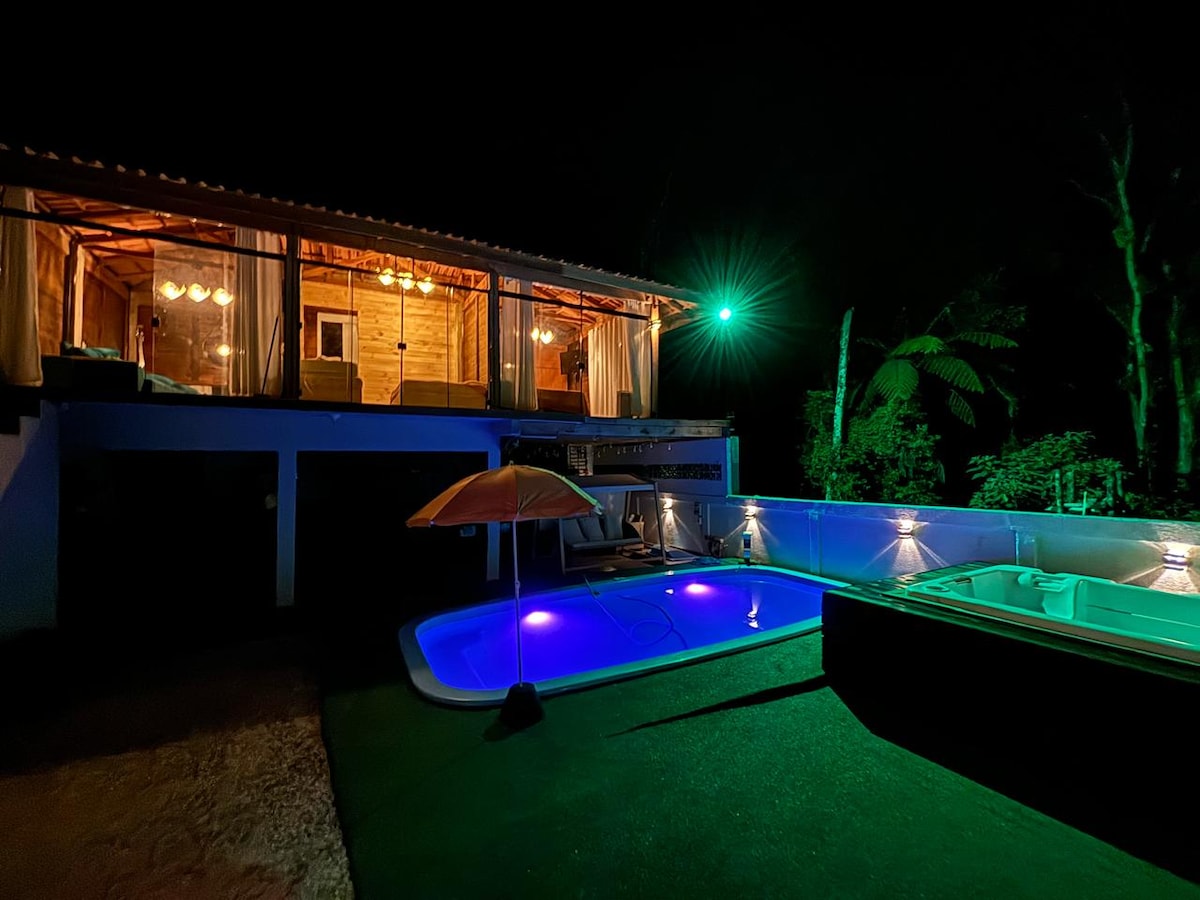 Escape do ritmo acelerado da vida cotidiana e mergulhe em um ambiente de tranquilidade e reconexão. Localizada em meio a uma exuberante paisagem natural, nossa aconchegante cabana oferece o retiro perfeito para quem busca relaxamento e renovação. Com uma decoração charmosa, oferecemos as comodidades necessárias para uma estadia confortável, incluindo cozinha e acessórios, banheira com hidromassagem, piscina de imersão e vistas deslumbrantes. Nosso Insta @cabanasvaledotigre