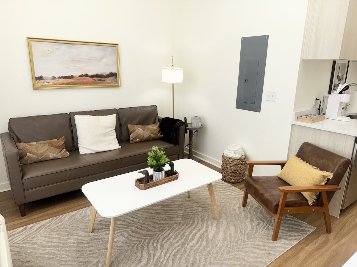 Welcome good people and furry friends! Enjoy a tiny home style stay in Primrose Garden Cottage. A *240 square foot studio. Complete with all New appliances and authentic vintage touches. We provide all amenities needed to make your stay easy. Enjoy our private garden and quiet neighborhood. Plenty of parking in our giant circular driveway for boats, trailers, or campers. Open to special requests. We look forward to hosting you.