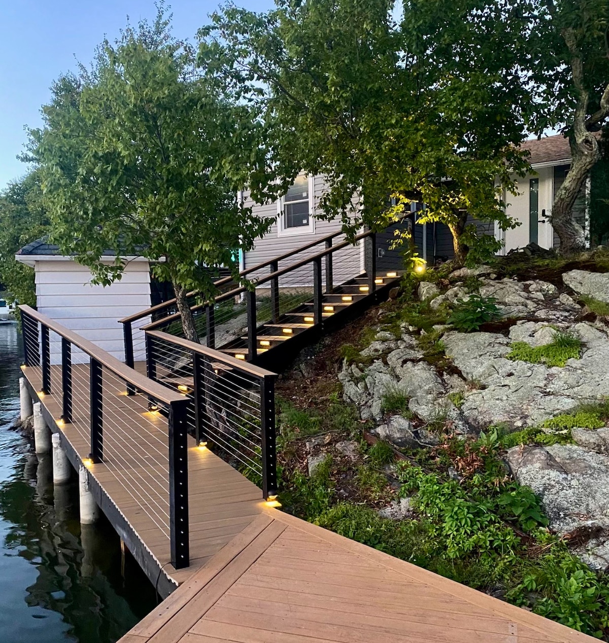 Ideal retreat year-round! Stunning lakefront home boasts dock, and hot tub. 3 bedrooms, spacious living area with private bar and workspace. Nestled on a secluded dead end street with direct lake access. Perfect for summer lake life, fall foliage, snowy landscapes and springtime bloom. Featuring a luxurious hot tub with LED lighting and Bluetooth. Enjoy fireside evenings by the water. Just 2 minutes from boat charters and highways. Our home has ONLY exterior cameras for security