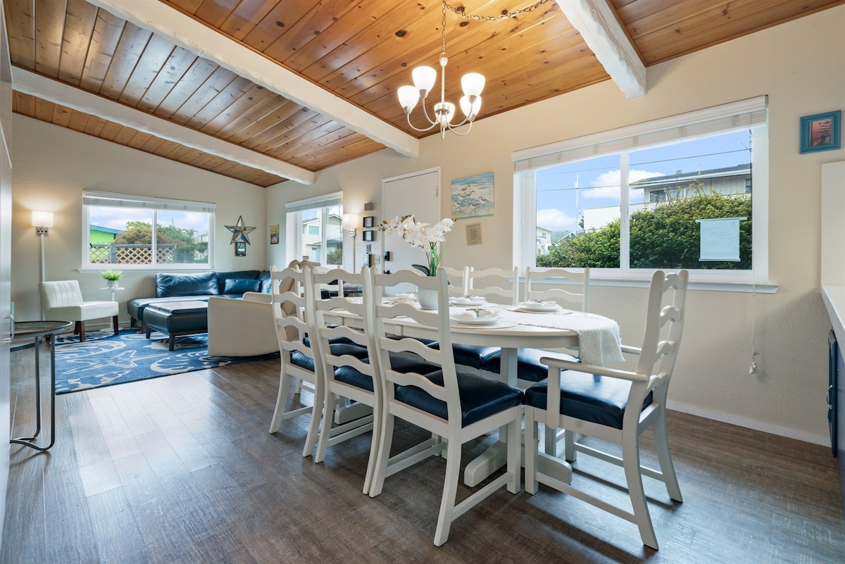 Quiet location, right off famous Highway One. ... This space has LOTS of relaxing space; the whole first floor of my home is yours and private. Huge bedroom plus a sitting room - two rooms. Great location, you can walk to a beautiful beach in ten minutes from here. Convenient start to day road trips. Nearby restaurants to walk to after driving all day long. Quiet hours ensures a peaceful stay as this is my home. People book one night and don't want to leave! Kayaks and beach bikes available.