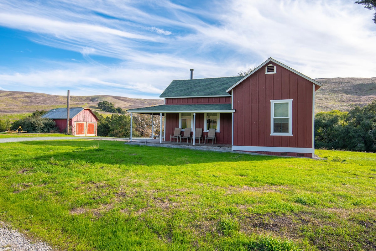 Come experience something unique and magical in our turn-of-the-century remodeled farm house. This rustic home lies within a 400 acre ranch located just over the mountain from the City of SLO. Allow yourself to travel back in time while you enjoy this 2 bedroom, 1 bath 1000' home which comfortably sleeps 4 guests in its king and queen beds. The newly remodeled kitchen with its granite counters and modern appliances is fully equipped. Relax outside on the flagstone patio or wrap-around porch.