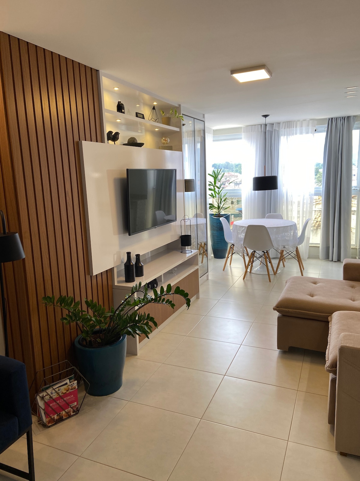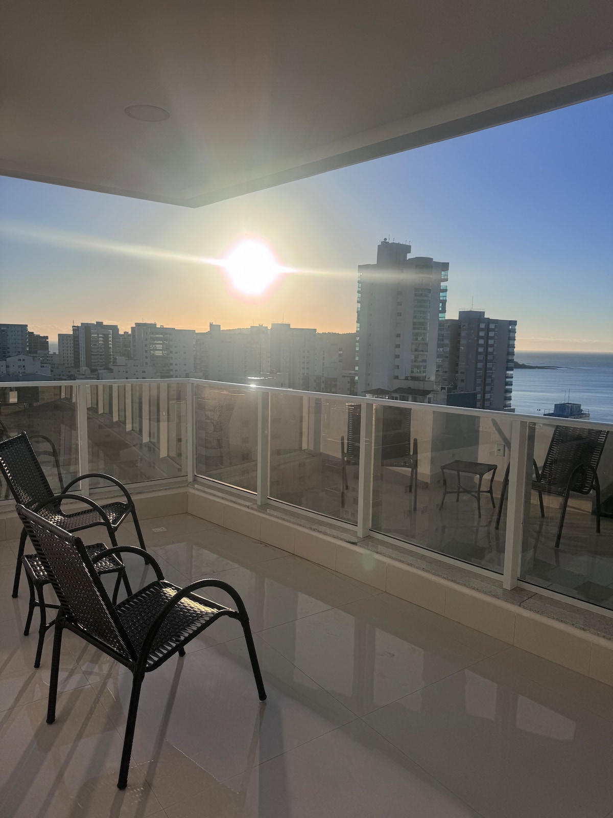 Conforto, luxo e tranquilidade. Isso você encontra em nosso apartamento que foi cuidadosamente projetado para lhe proporcionar uma experiência inesquecível com o MAR. Nesse ambiente arquitetônico clean, moderno, tecnológico e sofisticado você poderá usufruir da sensação de estar em um navio em alto mar. Você merece ter essa experiência! Sinta o cheirinho do churrasco com essa bela vista enquanto relaxa em nosso balanço panorâmico. Você não vai se arrepender!