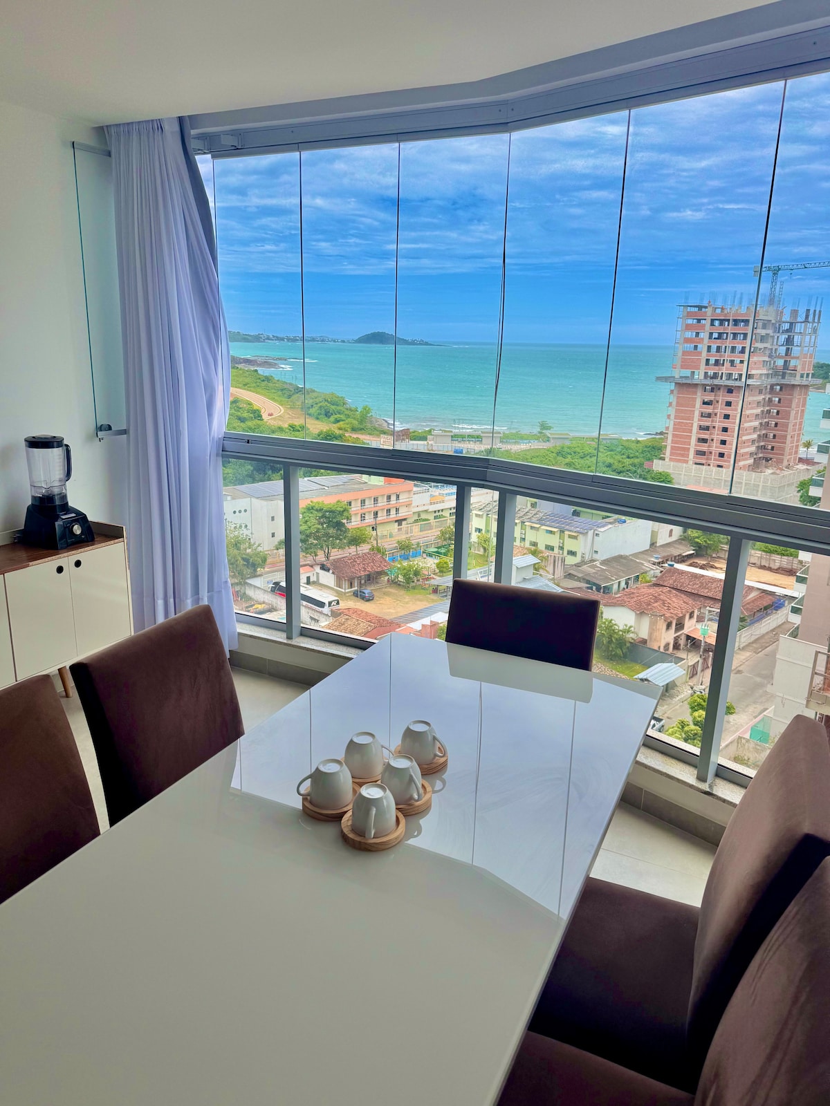 Conforto, luxo e tranquilidade. Isso você encontra em nosso apartamento que foi cuidadosamente projetado para lhe proporcionar uma experiência inesquecível com o MAR. Nesse ambiente arquitetônico clean, moderno, tecnológico e sofisticado você poderá usufruir da sensação de estar em um navio em alto mar. Você merece ter essa experiência! Sinta o cheirinho do churrasco com essa bela vista enquanto relaxa em nosso balanço panorâmico. Você não vai se arrepender!
