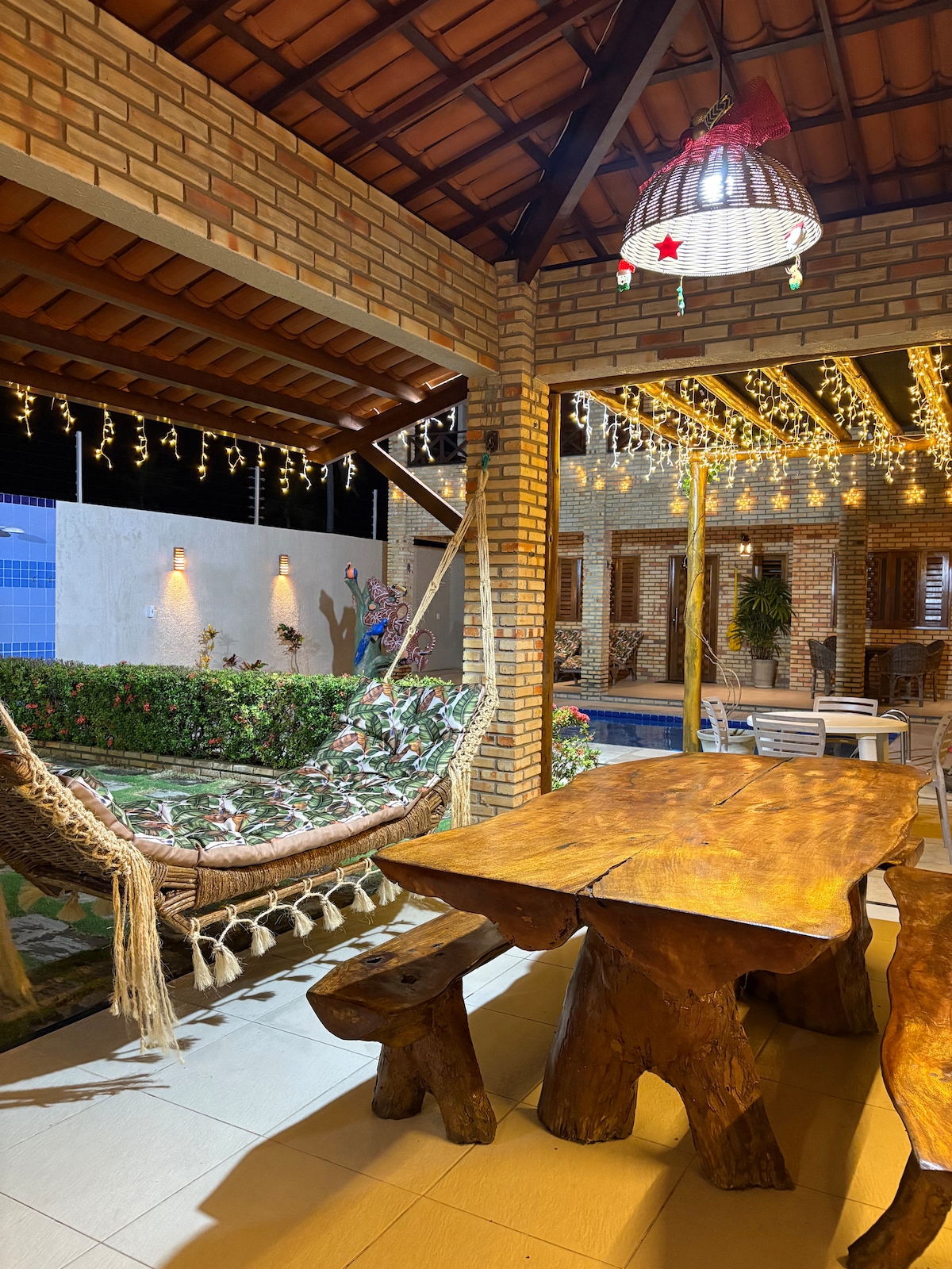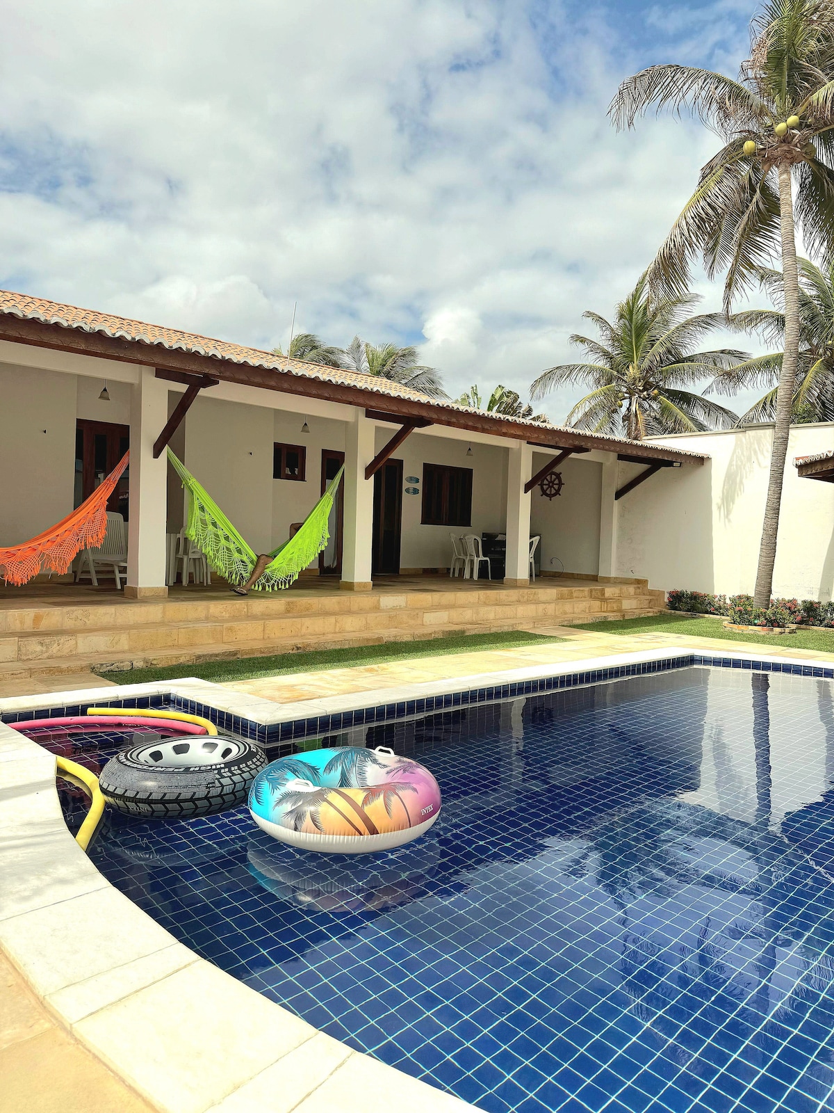 Come and enjoy an unforgettable vacation in our oasis just 300 m from the beach and near the famous Beberibe Cliffs in Ceará, Brazil. Spacious, recently renovated house with 7 bedrooms (6 are suites), all with air conditioning, double beds, and hooks for hammocks. 700 m² of built area, swimming pool, barbecue area, living and dining rooms, and fully equipped kitchen. Have fun in comfort, but please note: loud music, parties, and live bands are not allowed as this is a residential neighborhood.