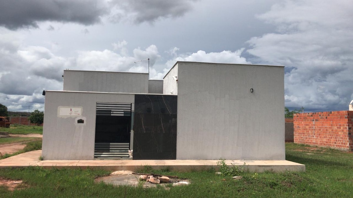 Casa ampla, 1 quarto com cama queen, mesa pra trabalho, guarda-roupa amplo, ar condicionado, TV 42’. 1 suíte, cama queen + closet, ar condicionado, TV 42’ 1 quarto com 2 camas de solteiro, baú para roupas, ar condicionado 1 banheiro social + lavabo Churrasqueira Gira Grill Área de Lazer com Piscina Casa localizada no centro da cidade, 5 minutos a pé de farmácia, padaria, mercado e principal praça da cidade. 🚫 Proibido das festas na casa 🚫