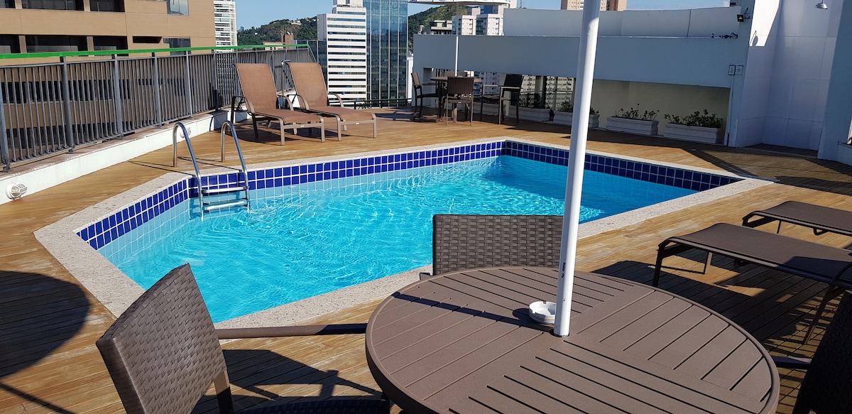Charmoso e mais completo apartamento para casal, que acomoda até 4 pessoas no apartamento. O imóvel está recém reformado e equipado, possui uma lindíssima vista para o mar. A localização perfeita próximo de restaurantes, bares, Bob's, Burger king, salão de beleza, shopping, supermercados, padarias, hospital e farmácias. Tudo sem precisar de carro!