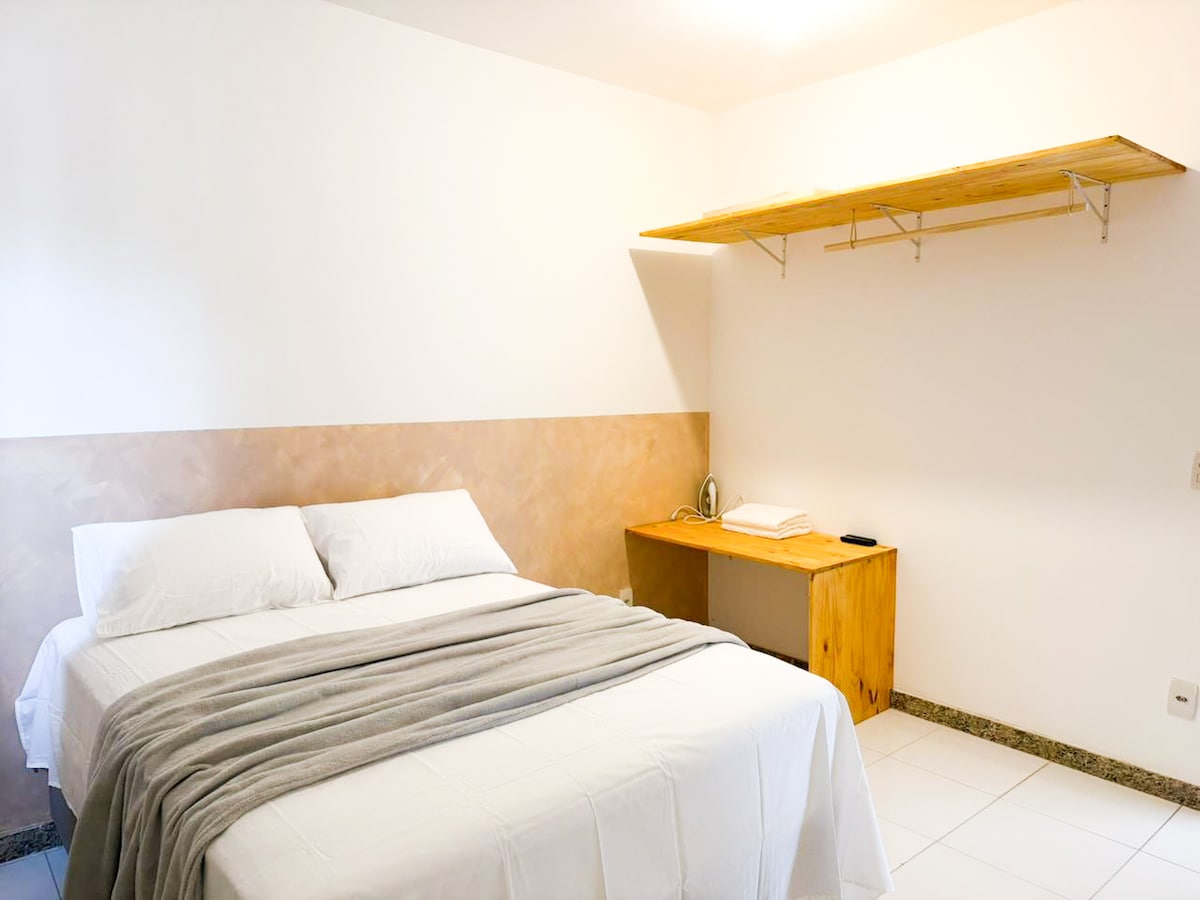 Apartamento aconchegante, localizado a menos de 1km da praia de Itapuã ( 10 minutos andando), e a menos de 500 metros do maior shopping do estado, shopping Vila Velha ( 5 minutos andando) o edifício fica em uma avenida movimentada, não possui garagem, porém há ruas largas de fácil estacionamento. O apartamento fica no terceiro andar e o acesso é por ESCADAS, mas nada que prejudique a experiência.