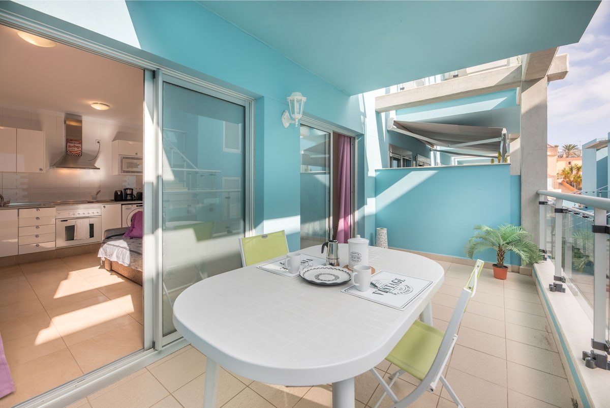Moderno apartamento con balcón y extraordinarias vistas al mar, muy bien situado, a menos de 3 minutos caminando de la playa. Reformado, con internet gratis, aire acondicionado, tv con canales internacionales, tranquilo, acogedor y luminoso, con una doble altura e idílica buhardilla.