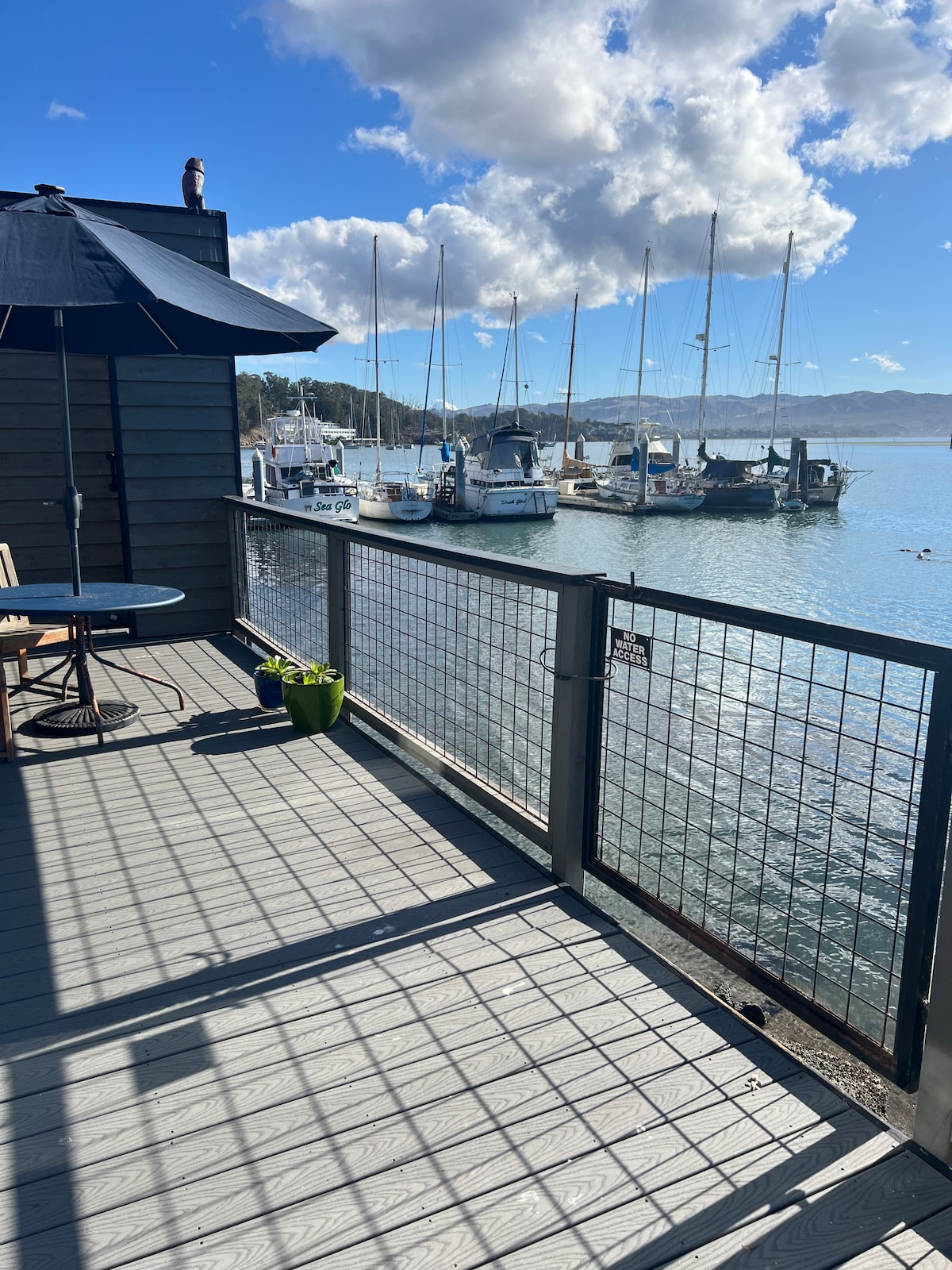 “The Boathouse Cottage” is perfect for a romantic getaway or just relaxing with a great view. It is located directly on the gorgeous Bayfront of Morro Bay, on a Bayfront dock. Although, the dock is not floating, your front yard IS the water. Watch sea life frolic just beyond your deck. Enjoy barbecue's alfresco on the dock at sunset. Unwind after your day, relaxing by the "natural gas" fire pit. Bring your stand up paddle boards and launch at the neighboring launching ramp! Limitless fun!