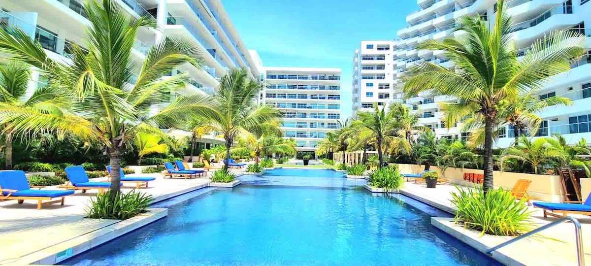 Un espacio elegante, espacioso y tranquilo para todo aquel que desee unos días de absoluta calma y hermosas vistas en playa manzanillo en Cartagena de Indias, allí podrá encontrar, un balcón amplio con vista al manglar, sala con vista parcial al mar, salida directa a la playa, más de 3 piscinas, parqueadero privado, gimnasio, zonas húmedas, Jacuzzi, lugares de relajación. De igual manera, una atención especial y coordenada en la playa para los huespedes de Morros Zoe.