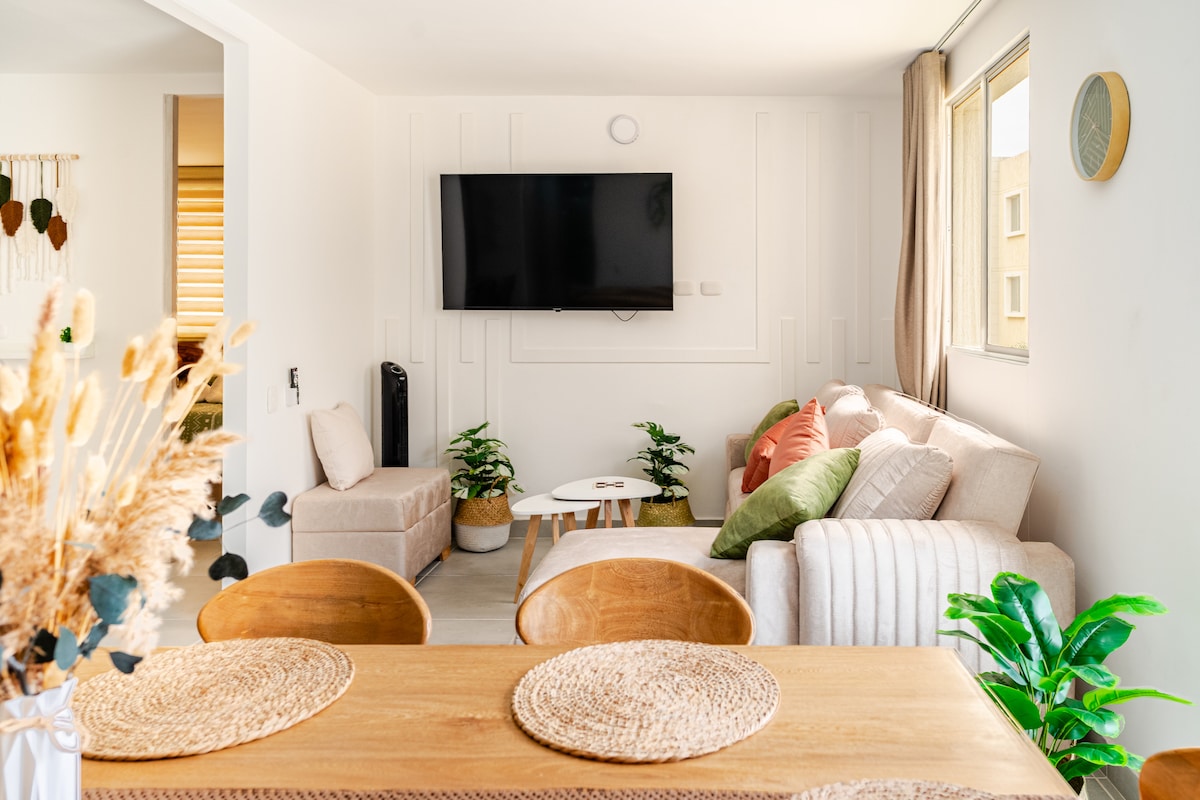 Whether you're visiting for a relaxing vacation or business, there's no better place to stay than in a strategically located apartment, with a beautiful view and carefully furnished for your comfort. • 1 bedroom, 1 bathroom, and a fully equipped kitchen. • Air conditioning, Smart TV, and high-speed Wi-Fi. • Surrounded by beaches and just 10 min from the historic walled city. • Access to pool, jacuzzi, gym, and sauna. Visitors, changing or adding guests during the stay is not allowed.