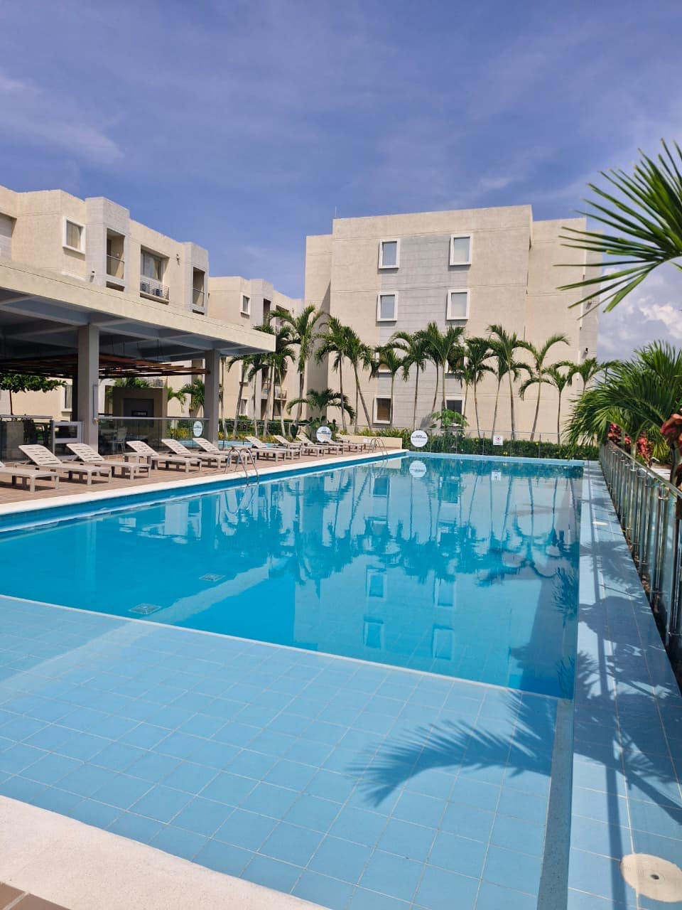 Escapa a un oasis de tranquilidad y lujo en nuestro exclusivo apartamento, situado a solo 5 minutos del mar. Diseñado para ofrecer una experiencia inolvidable, perfecto para quienes buscan relajarse, trabajar en un entorno inspirador o disfrutar de momentos especiales en familia. Excelente ubicación a 18 min del aeropuerto de Cartagena, 25 minutos del centro histórico. Acceso al club de playa de Serena del Mar. 2 Cuartos, Cocina equipada, Smart TV, Sala de estar, balcón y parqueadero.