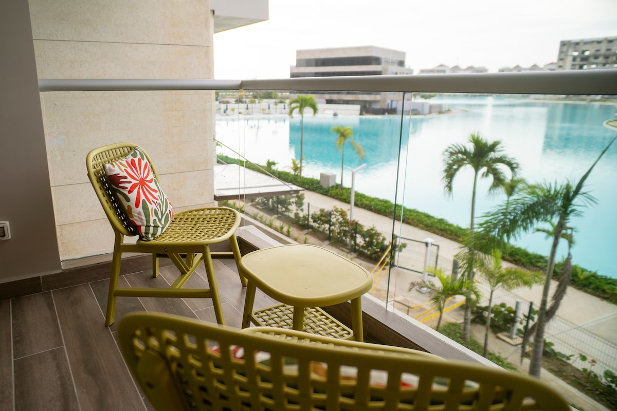 Apartamento de lujo en Cartagena en la primera Kristal Lagoons de Colombia paraíso de aguas cristalinas y playa de arena blanca en condominio Baia Krystal con vista excepcional a la laguna, disfruta de playa artificial con agua dulce y deportes náuticos, jacuzzi, turco, sauna, gimnasio, guarderia infantil, salon de eventos y las mejores y comodas amenidades de la zona. 5 minutos de las playas de Manzanillo en auto , 10 minutos del aeropuerto y 15 minutos del centro histórico