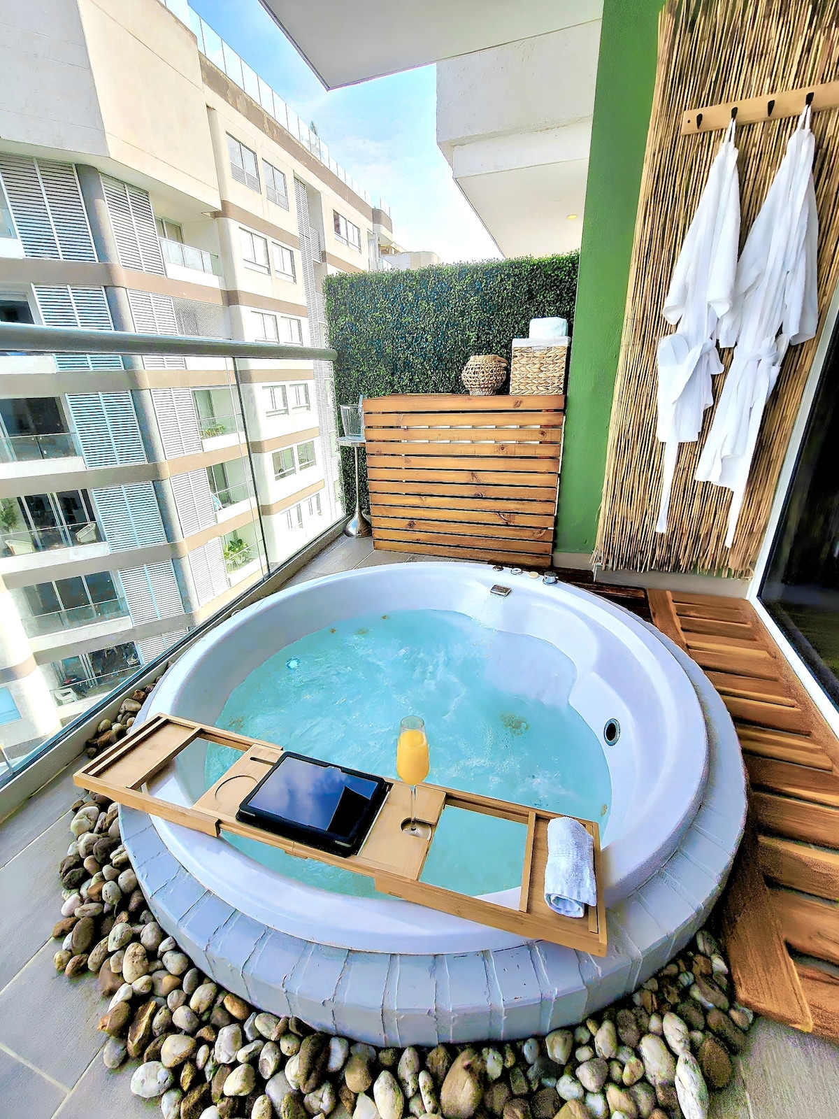 Our elegant apartment is located in one of the most complete and modern buildings in the exclusive "Cielo Mar" sector. You'll be just a few meters from "Playa Azul," one of the city's best beaches, 10 minutes from the Historic Center, and only 5 minutes from the airport. The apartment has extraordinary views of the bay and ocean, which you can enjoy from the private jacuzzi on your balcony. You can also enjoy the incredible rooftop infinity pools, complete with jacuzzi, sauna, terrace bar & BBQ