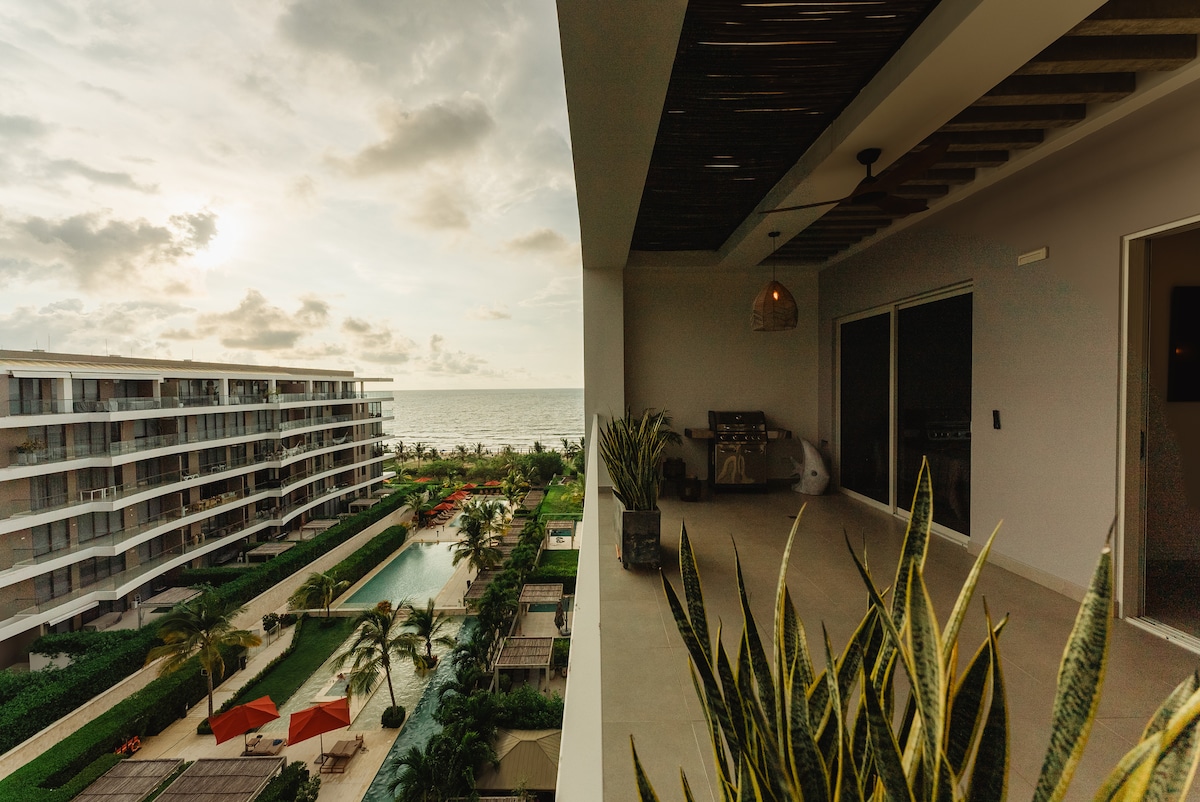 Our elegant apartment is located in one of the most complete and modern buildings in the exclusive "Cielo Mar" sector. You'll be just a few meters from "Playa Azul," one of the city's best beaches, 10 minutes from the Historic Center, and only 5 minutes from the airport. The apartment has extraordinary views of the bay and ocean, which you can enjoy from the private jacuzzi on your balcony. You can also enjoy the incredible rooftop infinity pools, complete with jacuzzi, sauna, terrace bar & BBQ